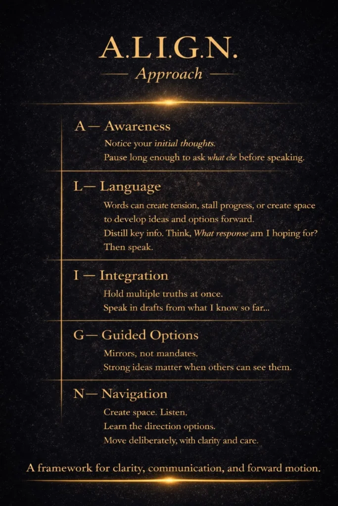 Slow The Moment to Shape The Direction – so ideas, language, and action plans serve the goals.